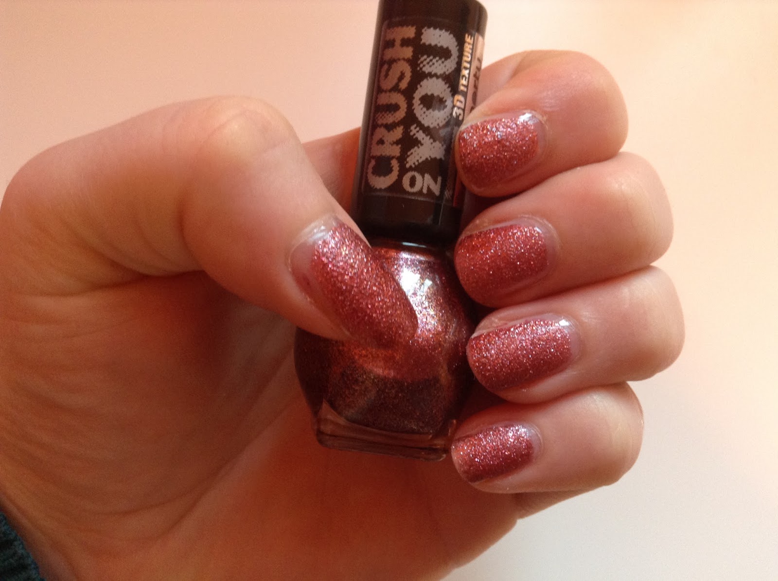 Net zoals Gorgeous Red, kan ik ook dit een beauty noemen. Het is een heel bijzondere oudroze bronzy kleur. Een vergelijkbaar kleur in liquid sand style heb ik zeker niet in mijn stash. Dit nagellakje dekte net zoals het vorige lakje redelijk slecht. Ik had opnieuw drie laagjes nodig. Verder droogde het nagellakje wel ontzettend snel en bleef hij toch zo’n twee dagen mooi zitten.